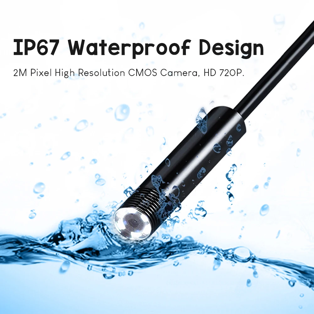 Features:100% brand new and high quality. It can work for Android mobile device. 2M Pixel High Resolution CMOS Camera, HD 720P. Mini Size and Light weight for portable use. 6 Led Lights, brightness adjustable. IP67 Waterproof Design. Compatible for Android /Windows 2000 / XP / Vista / 7.. Support photo taking and video recording on mobile phone.