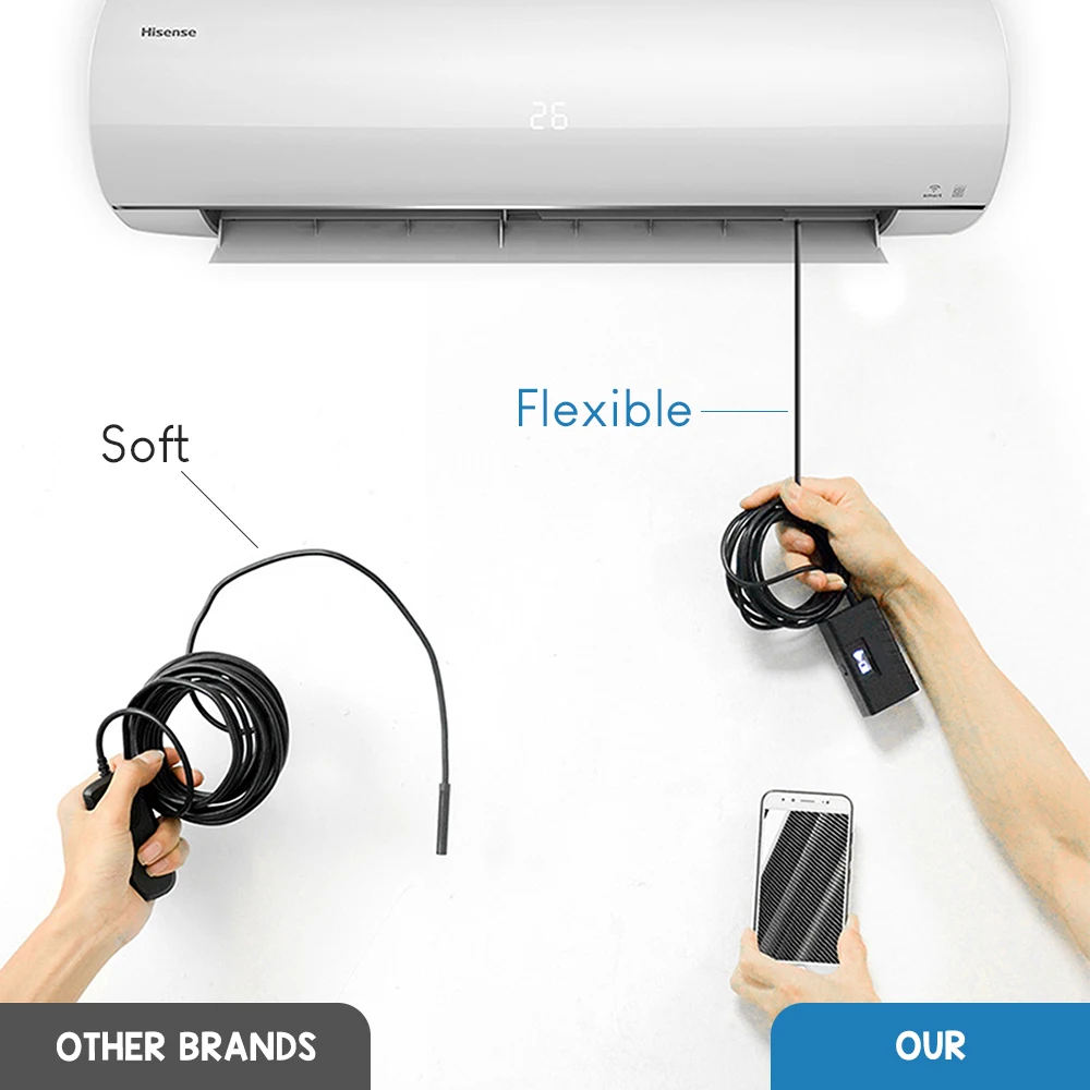 Specifications: Cable length: 1/1.5/2/3.5/5M, Lens:2M Pixel CMOS camera, 6leds , Resolution: 640*480, 1280*720 , Waterproof Level: IP67 , Transmission distance: Within 5-30m , Effective Focal Distance: 4cm -in finite , Diameter:7.0MM